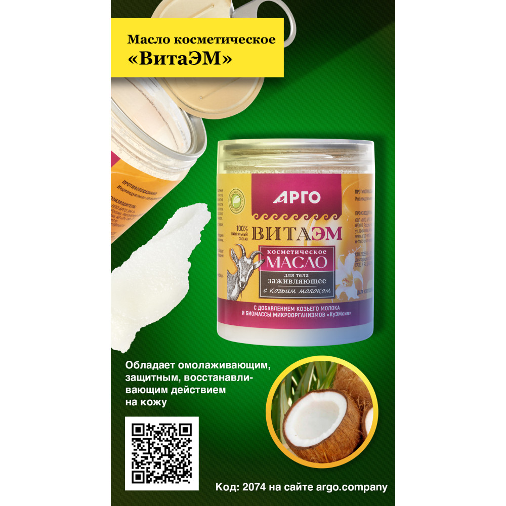 Код товара2074 ПроизводительАРГО ЭМ-1 СоставКокосовое масло, пальмоядровое масло, облепиховое масло, глицерин, молоко козье, биомасса микроорганизмов «КуЭМсил».