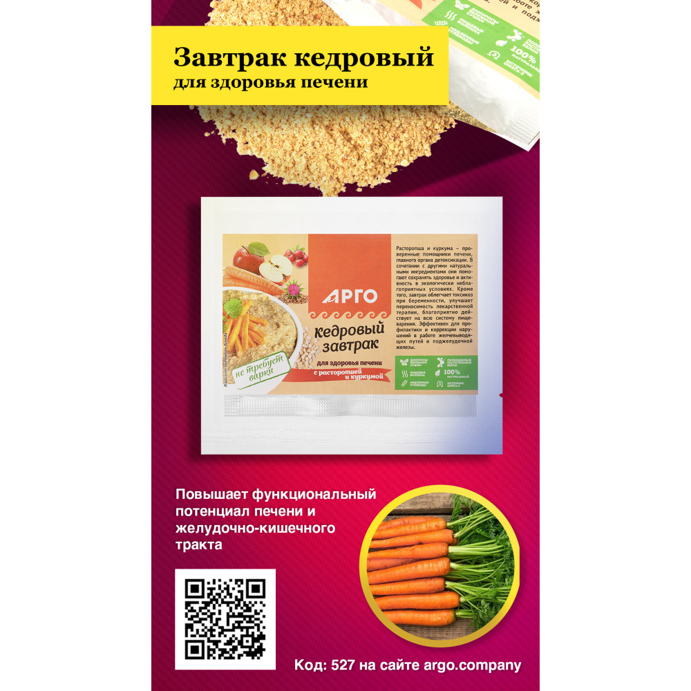 ● Пектины (яблоко) и пищевые волокна (талкан, морковь, семя подсолнечника, жмых кедрового ореха) связывают и частично обезвреживают токсические вещества в кишечнике, значительно разгружают печень и восстанавливают нарушенную деятельность желудочно-кишечного тракта.