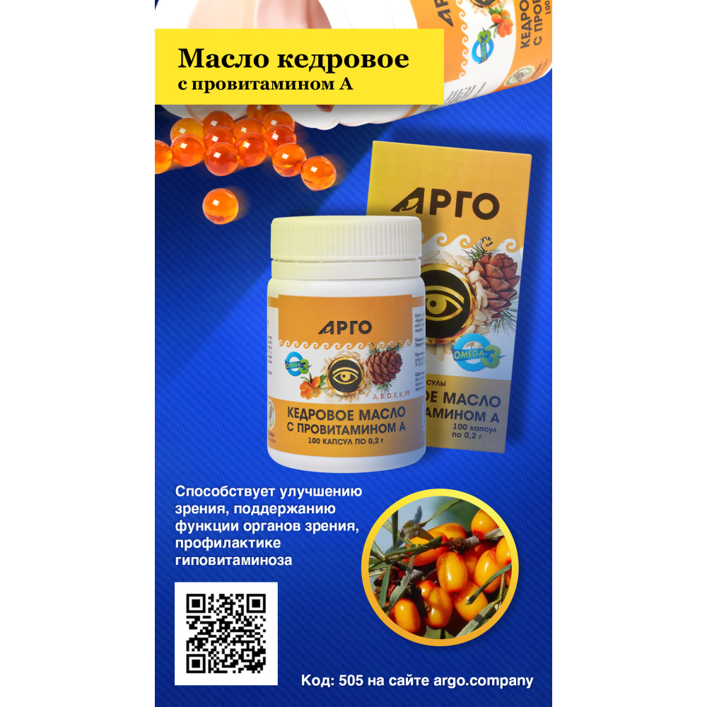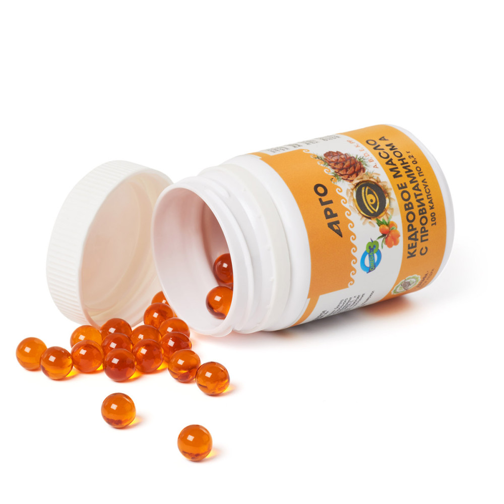 | Состав | Масло растительное нерафинированное - смесь «Кедровое с провитамином А (нерафинированные масла кедровое и облепиховое (концентрат)); желатин пищевой. |