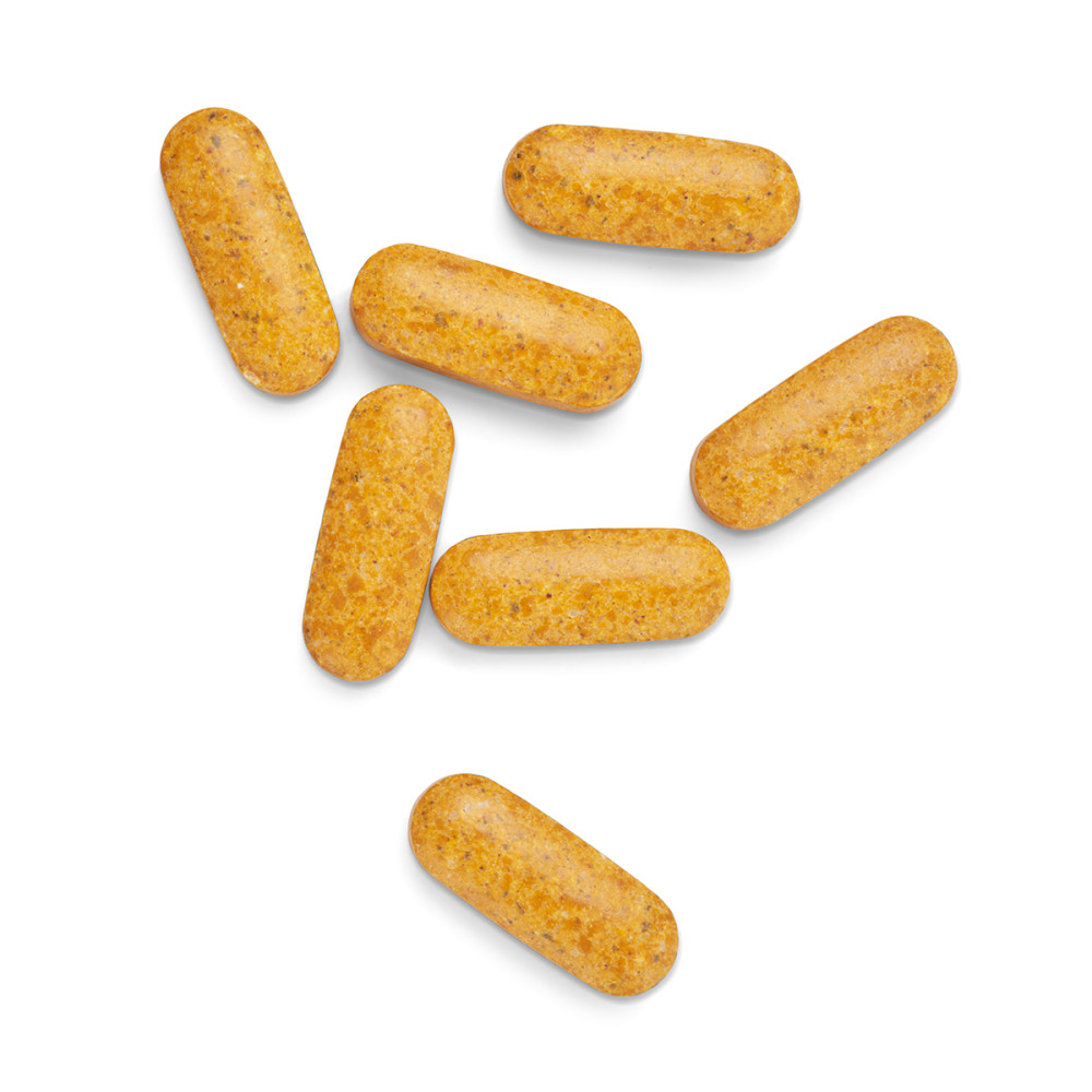 | Состав | В 1 таблетке: двухосновной фосфат кальция (23,3 % кальция, 18 % фосфора) – 427,94 мг, холина битартрат (37 % холина) – 169,67 мг, аскорбиновая кислота (95 % витамина С) – 169,0 мг, запатентованная смесь фруктов и овощей (ананас, брокколи, морковь, яблоко, апельсин, томат, брюссельская капуста, цветная капуста, свекла, черника, сельдерей, виноград, грейпфрут, капуста, лимон, лайм, слива, малина, клубника, арбуз, редис, дыня, вишня, лук-порей, лук, папайя, персик, груша) – 88,0 мг, никотинамид – 51,5 мг, глюконат железа (11,58 % железа) – 50,0 мг, бетаина гидрохлорид – 25,0 мг, L-глутаминовая кислота – 25,0 мг, ретинола пальмитат (500 МЕ/мг витамина А) – 12,0 мг, токоферола сукцинат – 10,9 мг, пиридоксина гидрохлорид – (82 % витамина В6) – 7,3 мг, глюконат магния (5,4 % магния) – 7,2 мг, пантотенат кальция (92 % пантотеновой кислоты) – 6,5 мг, глюконат марганца (11 % марганца) – 6,15 мг, рутин из цветков софоры – 5,0 мг, холекальциферол (100 МЕ/мг витамина D3) – 4,8 мг субстанции холекальциферола с активностью 100 МЕ/мг соответствует 12 мг Витамина D3, рибофлавин – 4,8 мг, тиамина мононитрат (97 % витамина В1) – 4,33 мг, цитрусовые биофлавоноиды из цельных плодов померанца – 4,0 мг, глюконат цинка (12,8 % цинка) – 2,2 мг, листья люцерны – 1,0 мг, листья капусты – 1,0 мг, плоды кайенского перца – 1,0 мг, порошок чеснока – 1,0 мг, порошок бурой водоросли Ascophyllum nodassum (не менее 4 % йода) – 1,0 мг, листья петрушки – 1,0 мг, листья шпината – 1,0 мг, листья кресс-салата – 1,0 мг, соевый лецитин – 1,0 мг, экстракт стеблей спаржи – 1,0 мг, липаза – 1,0 мг, амилаза – 1,0 мг, семена горчицы – 1,0 мг, целлюлаза – 1,0 мг, изофлавоны сои – 1,0 мг, порошок тыквы – 1,0 мг, цианокобаламин (1 % витамина В12) – 0,9 мг, глюконат меди (13,5 % меди) – 0,3 мг, инозит – 0,26 мг, йодид калия (76,3 % йода) – 0,15 мг, биотин 1%-ный – 0,1 мг. Вспомогательные компоненты: носитель МКЦ (E460), антислеживающий агент стеариновая кислота (E570), стабилизатор кроскармеллоза натрия (E468), антислеживающие агенты: диоксид кремния (E551), стеарат магния (E470). Энергетическая и пищевая ценность: 1,45 ккал / 6,07 кДж; белки – 0,00 г; жиры – 0,07 г; углеводы – 0,33 г. |