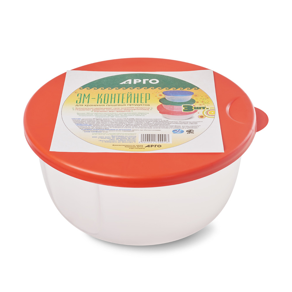 | Код товара2019 | ПроизводительАРГО ЭМ-1 | СоставВ наборе три ЭМ-контейнера из ЭМ-пластмассы емкостью 2,0 л, 1,2 л, 0,7 л. |