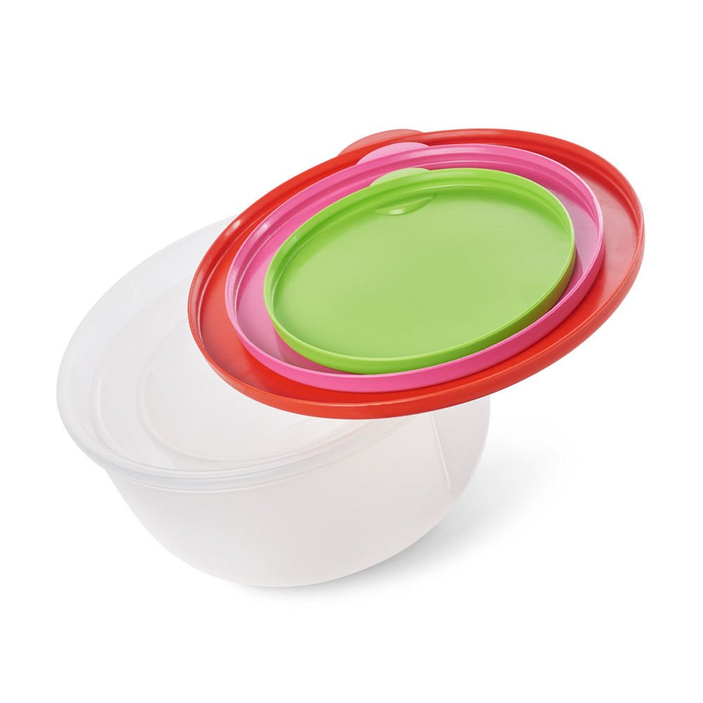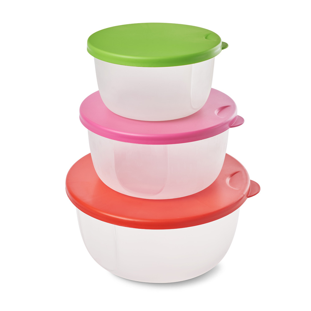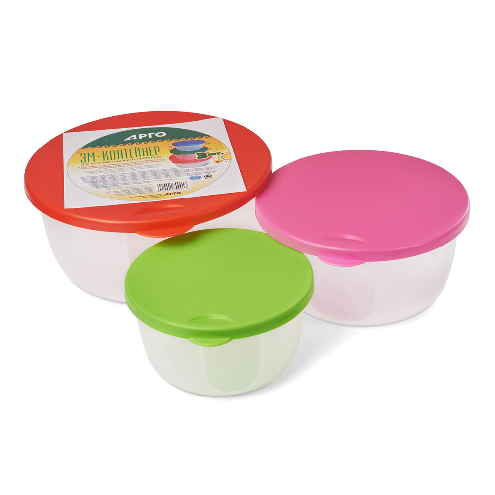 Форма и размер ЭМ-контейнеров подобраны таким образом, что они удобно укладываются один в другой по принципу матрешки. Занимая мало места, тем не менее, позволяют размешать большой объем продуктов питания. Набор будет незаменимым помощником для любой хозяйки на кухне, на природе, на даче!