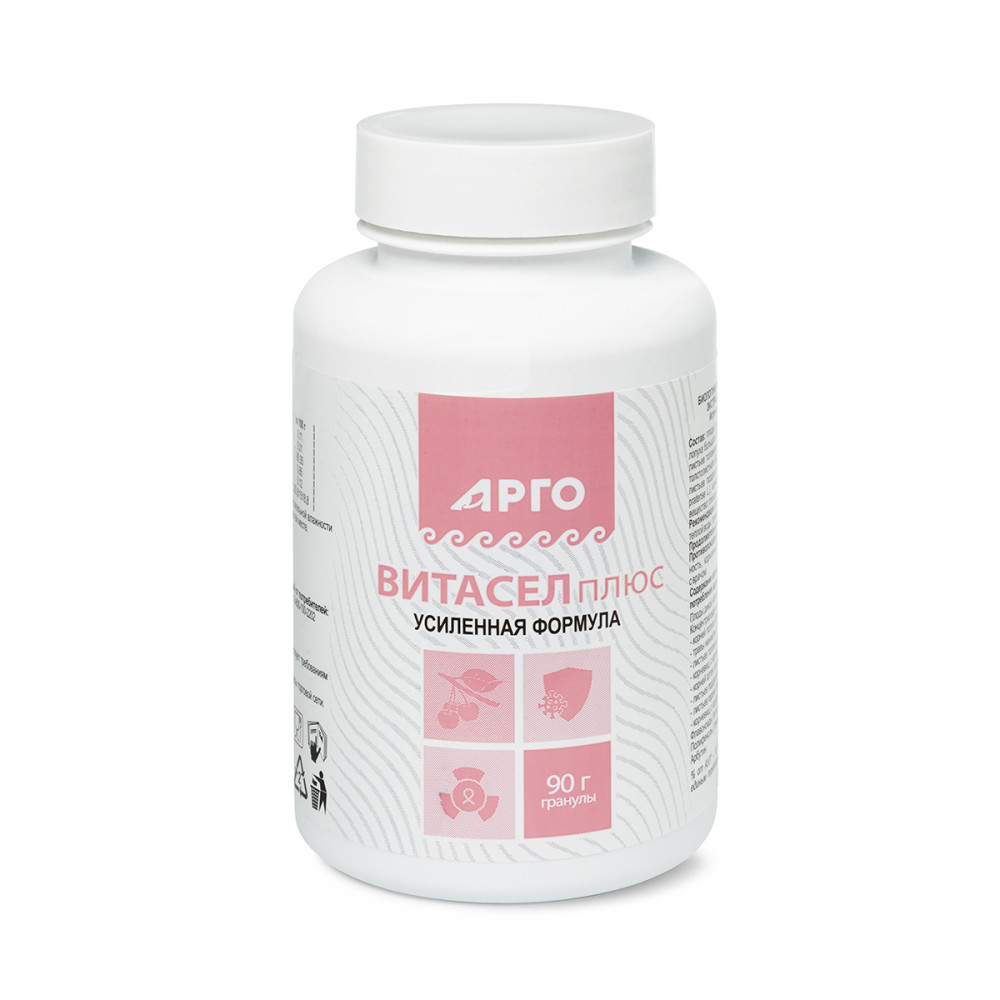 «Витасел плюс» улучшает эффективность специфической терапии (химиотерапии, лучевой терапии) онкологических заболеваний, уменьшает побочные действия от проводимой комплексной терапии злокачественных опухолей, способствует повышению устойчивости организма человека к воздействию внешних факторов, вызывающих онкологические заболевания, стимулирует способность иммунной системы организма распознавать и уничтожать атипичные клетки. Может способствовать обратному развитию доброкачественных новообразований. Плоды дикой яблони богаты витамином С; содержат провитамин А, витамин В1; клетчатку, калий, натрий, кальций, магний, фосфор, железо, йод. Органические кислоты в комплексе с дубильными веществами останавливают процессы гниения и брожения в кишечнике. Семена дикой яблони содержат натуральный витамин В17, который распадается в организме до активных метаболитов, способствующих улучшению работы иммунной системы. Фермент бета-глюкозидаза расщепляет витамин В17 на вещества, разрушающие опухолевую ткань. Витамин В17 действует селективно губительно только на раковые клетки. В 2 г (1 чайной ложке) содержится: плоды дикой яблони - 100,00 мг; экстракт корней лопуха большого - 84,0 мг; экстракт травы манжетки обыкновенной - 40,00 мг; экстракт листьев толокнянки обыкновенной - 31,60 мг; экстракт корневищ с корнями бадана толстолистного - 23,20 мг; экстракт корней алтея лекарственного - 23,20 мг; экстракт листьев подорожника большого - 21,00 мг; экстракт листьев герани луговой - 17,80 мг; экстракт корневищ с корнями родиолы розовой - 2,10 мг. Пищевая и энергетическая ценность в 1 порции продукта (2 г): белки - 0,0022 г; жиры - 0,00 г; углеводы - 1,80 г; пищевые волокна - 0,017 г; органические кислоты - 0,0024 г. Энергетическая ценность - 7,25 ккал (30,38 кДж).