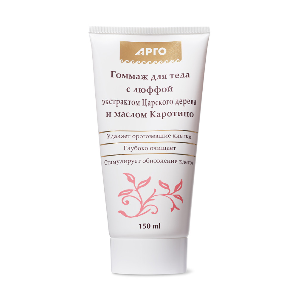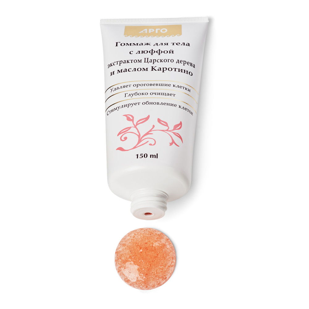 Гоммаж очень деликатно и глубоко очищает кожу тела, стимулирует ее обновление, удаляет ороговевшие клетки кожи, не раздражает и не травмирует кожу. В качестве скраба использована люффа (волокнистый материал – мочалка натуральная). Экстракт Царского дерева способствует омоложению кожи тела, обладает противовоспалительными свойствами, поддерживает энергетический баланс клеток. Витамин Е, содержащийся в масле Каротино, проникает в глубокие слои кожи, увлажняет, тонизирует кожу, придает ей эластичность и сияние, препятствуя старению. Защищает кожу от вредного воздействия свободных радикалов в результате ультрафиолетового облучения и от загрязнения окружающей среды.